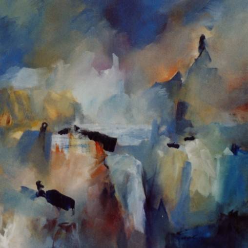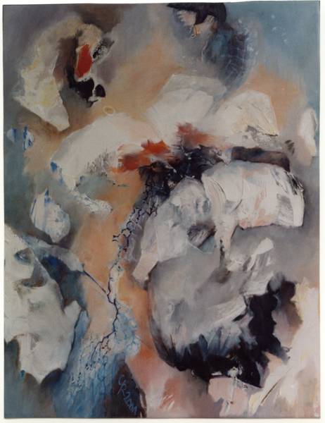 Die Ölmalerei - der Schwerpunkt - bewegt sich häufig im gegenständlich-abstrakten Grenzbereich; immer eine prägnante Herausforderung an Fantasie und intellektuelle Flexibilität des Betrachters darstellend. Ob eher herb-kristallin in der Formensprache oder wolkig-zart - gleichermaßen stimmig findet beides sich auf authentischem Nenner zusammen. Die Palette? Eher mild. Bevorzugte Sujets? Natur, im weitesten Sinne.