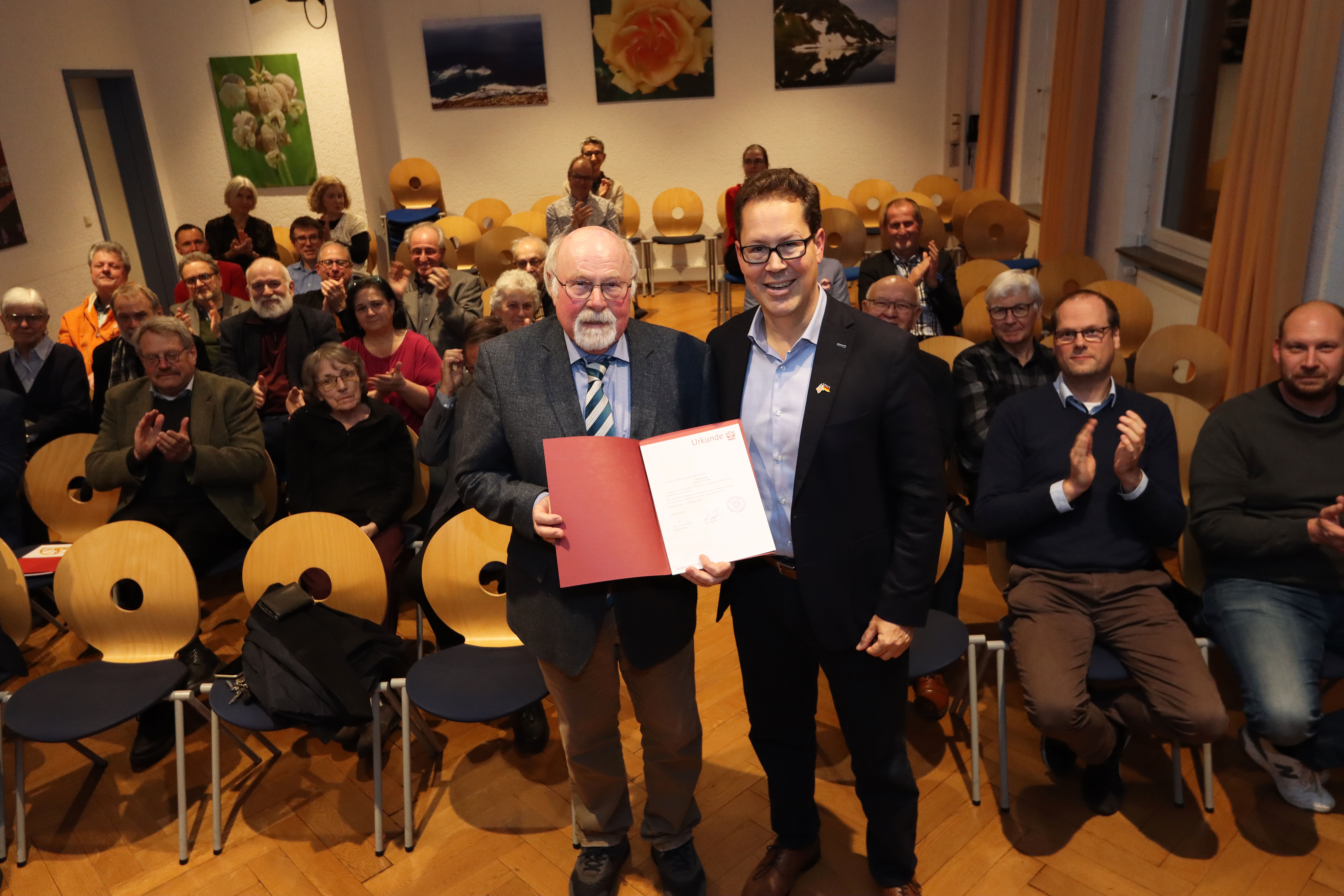 In seiner Laudatio wies der Heimatkundige Reinhold Werner mit einem Augenzwinkern auch darauf hin, dass Heribert Gött für die Stadt Langen durch seinen 148 Monate dauernden ehrenamtlichen Einsatz im Stadtarchiv rund 193.600 Euro gespart und so einen Beitrag zur Konsolidierung der städtischen Finanzen geleistet habe. „Heribert hat sich zum Wohle der Stadt und der Allgemeinheit ehrenamtlich eingebracht und er wird es auch an anderer Stelle bestimmt weiter tun“, ergänzte Reinhold Werner.