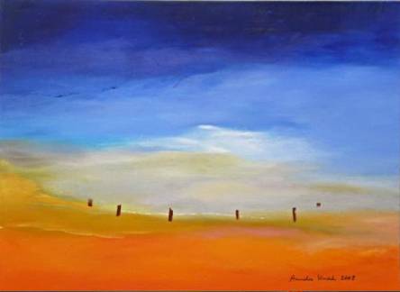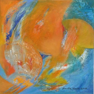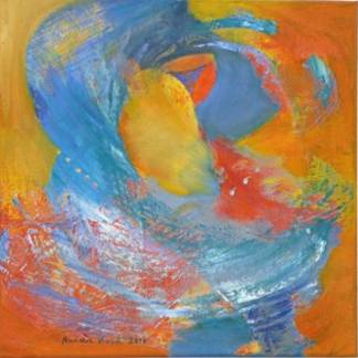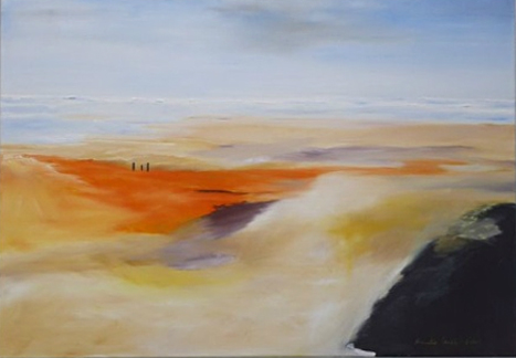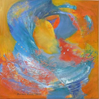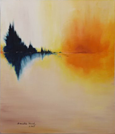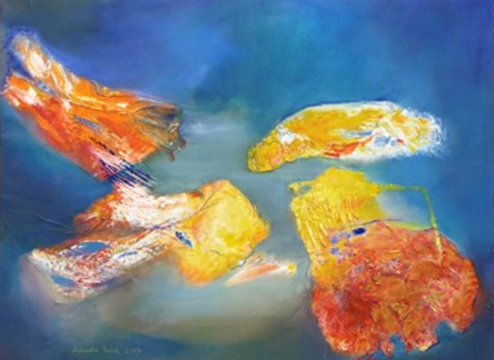 Die Hinwendung zur Ölfarbe als künstlerischem Ausdrucksmittel unter Verwendung kräftiger Farben - verbunden mit schwungvoller Linien-Führung und dezenter Sujet-Symbolik - überlässt es entsprechend der Intention der Künstlerin dem Betrachter,