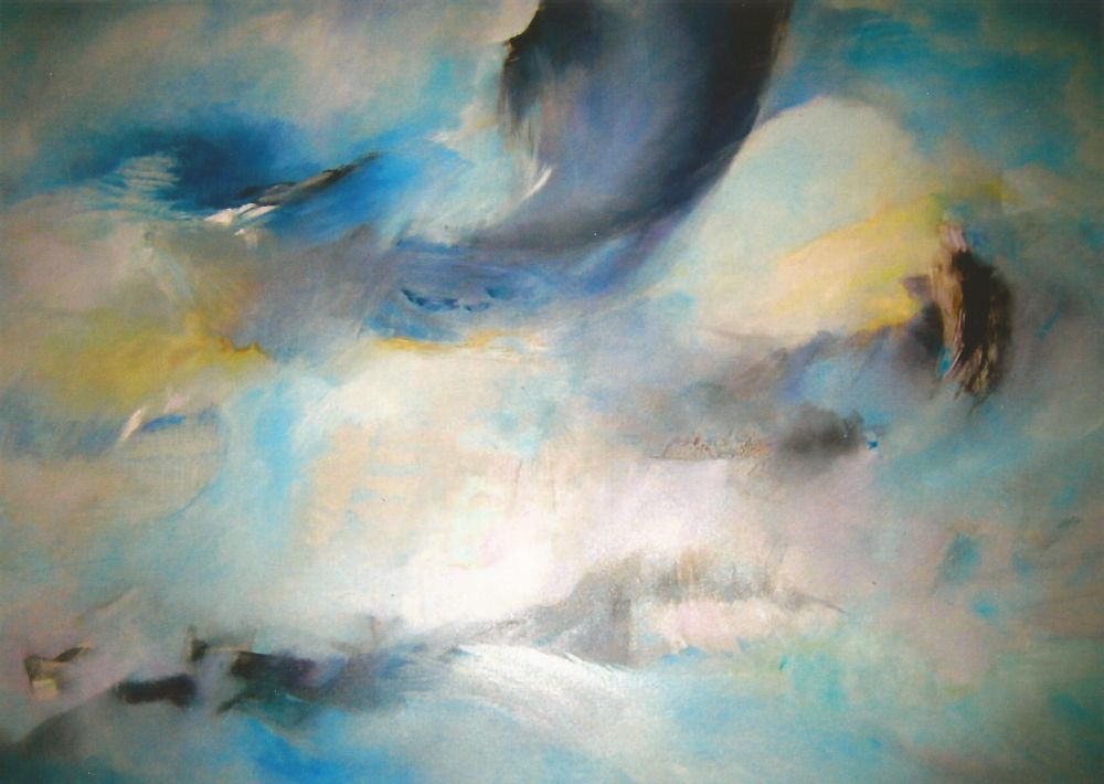 Die Ölmalerei - der Schwerpunkt - bewegt sich häufig im gegenständlich-abstrakten Grenzbereich; immer eine prägnante Herausforderung an Fantasie und intellektuelle Flexibilität des Betrachters darstellend. Ob eher herb-kristallin in der Formensprache oder wolkig-zart - gleichermaßen stimmig findet beides sich auf authentischem Nenner zusammen. Die Palette? Eher mild. Bevorzugte Sujets? Natur, im weitesten Sinne.