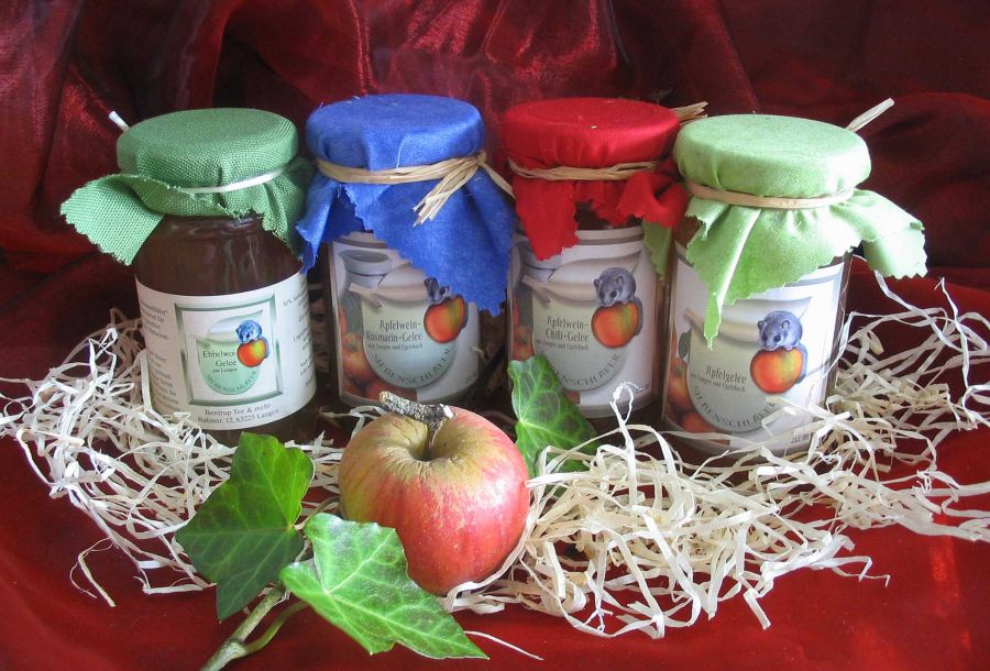 Süße Versuchung für 23,50 Euro: Apfelcidre (1 l), Blütenhonig (250 g), 2 Gläser Gelee nach Wahl, 1 Apfelweinglas