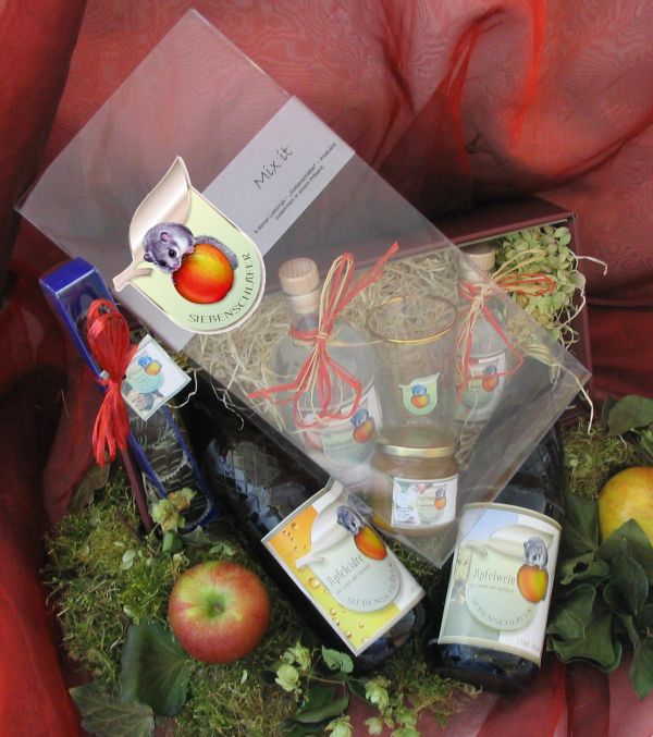 Sie suchen ein passendes Präsent für ihre Freunde, Verwandten oder Geschäftspartner? Mit einer schönen Siebenschläfer-Geschenkbox können Sie hier nichts falsch machen. Feine, regional hergestellte Produkte rund um den Apfel werden ansprechend präsentiert dargeboten. Der Reinerlös fließt direkt in den Erhalt der regionalen Streuobstwiesen rund um Langen und Egelsbach.