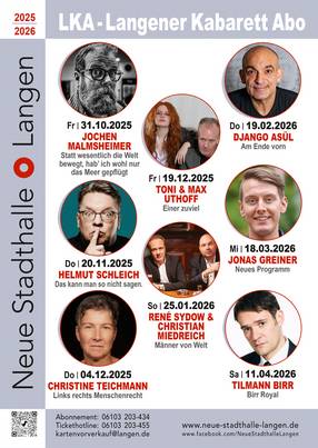 "Auf Augenhöhe" ist das dritte Soloprogramm des 28-jährigen Comedians. Mit seinen Gedanken zu Irrsinn des Alltags, zum Schwachsinn der modernen Zeit und zum Wahnsinn der Welt zeigt er, wie wichtig es ist, die Dinge mit Humor zu nehmen. Jonas Greiner macht vor keinem Thema halt. Stand-Up-Comedy und Satire auf der Höhe der Zeit. Hauptsache lachen. Hauptsache gemeinsam. Hauptsache auf Augenhöhe!